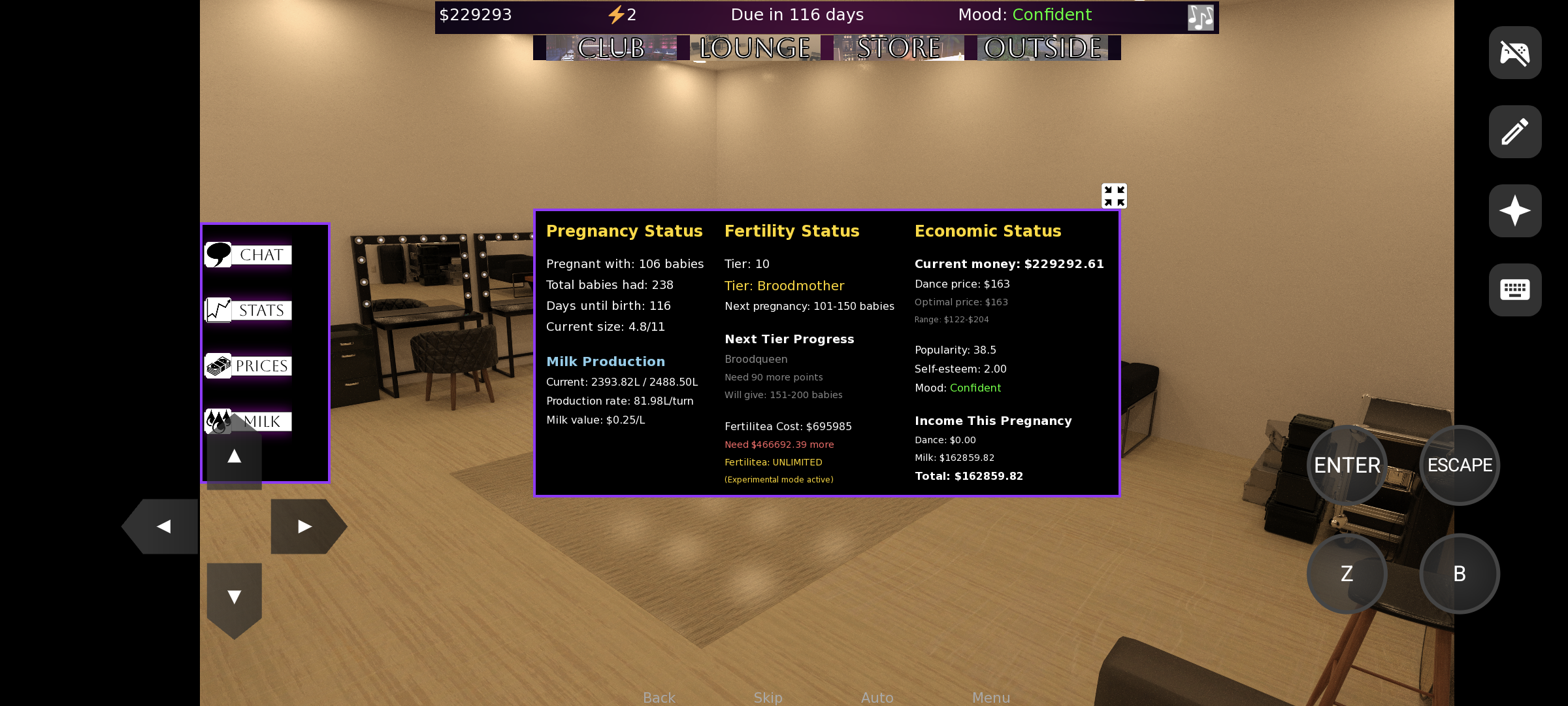 lol yeah balancing realism is a tough one. I try to have it where I can but at the end of the day I'm making a game about pregnant/hyper pregnant strippers in a pregnancy themed strip club so there's always going to be some concessions.